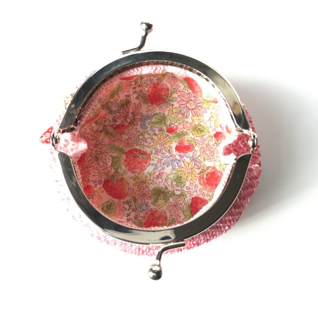 フランス DMC社製のピンクの糸に濃いピンクのビーズを編み込んだがま口です。