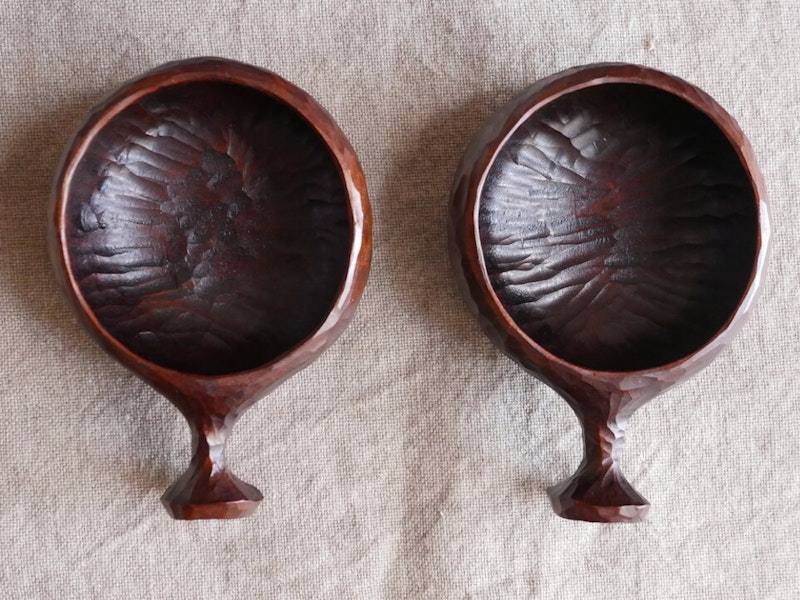 フィンランド北部に伝わる伝統工芸「ククサ」をモチーフにした木製のマグカップは、広島県の齋藤正明さんの作品。山桜をくり抜いた丸みのある形は手にやさしく馴染み、使うほどに愛着の湧く道具に育っていきます。山の澄んだ空気の中でコーヒーやスープをいただけば、きっと心癒されるひとときに。
