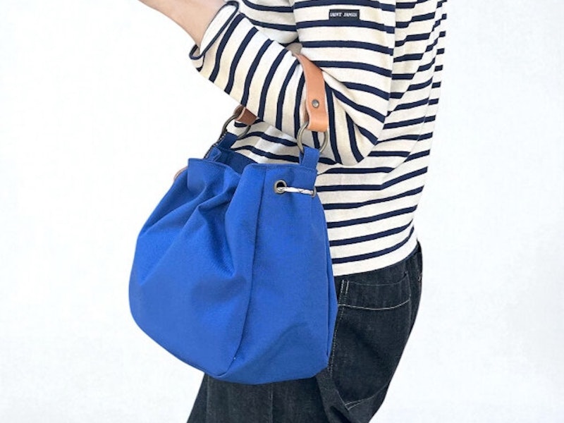 神戸のcluetoさんが作るころんとしたフォルムの巾着バッグは、小ぶりながらもお財布、ポーチ、メモ、小さめペットボトルまで入る収納力があります。アメリカ製の丈夫なナイロン生地で仕立てられ、撥水性にも優れており汚れにくいところも嬉しいポイントです。オプションのベルトをつけてショルダーバッグとしても◎。