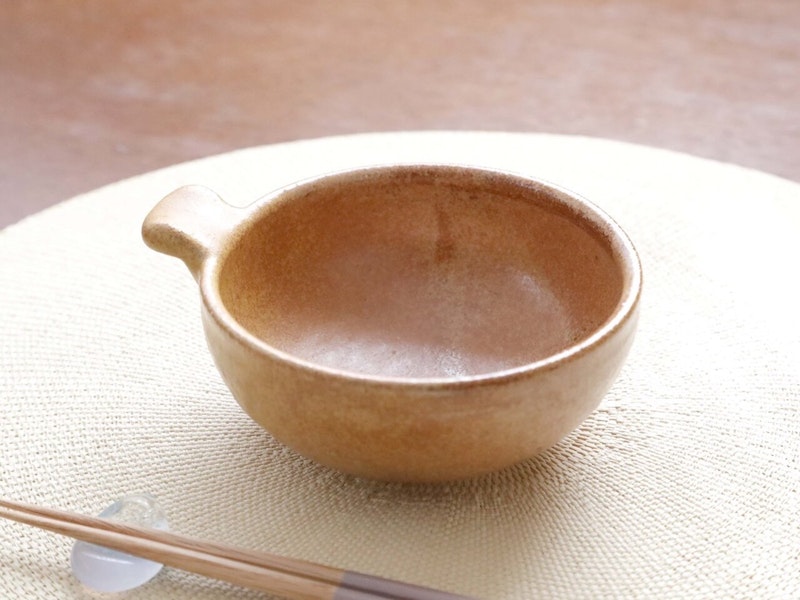 食卓に並べるだけで、どこかほっとする佇まいの「とんすい」。小さな取手が付いているので、熱々のお鍋や汁気のあるおかずを盛りつけても持ちやすいのが嬉しいですね。ころんとしたフォルムと表情豊かな山吹色の釉薬は和・洋どちらにも使いやすく、スープやスイーツの器としても大活躍。