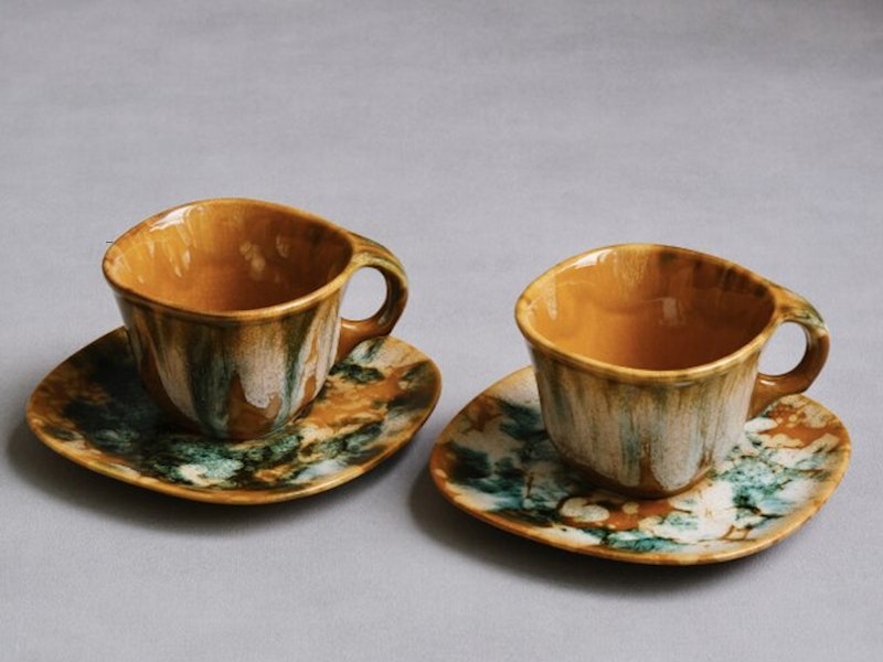 1940年から約50年間、カナダ・ケベック州で陶器を製造していたBeauceware(ボーセウェア)社製のカップ&ソーサー。釉薬の流れを生かした大胆な模様や色合いには、地域の陶工組合として始まったメーカーならではの職人たちの試みが表れているようです。モダンな形と、絵画のような模様のコントラストを楽しんで。