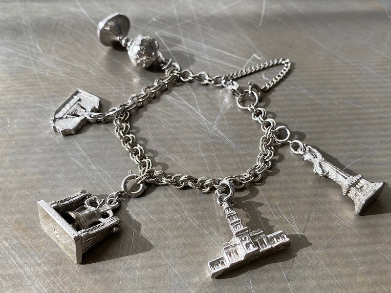 ▼地球儀に自由の女神。遊び心溢れるチャームのブレスレット