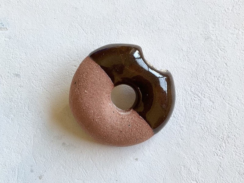 ▼ドーナツ好きさんへ。チョコがけドーナツの陶製ブローチ