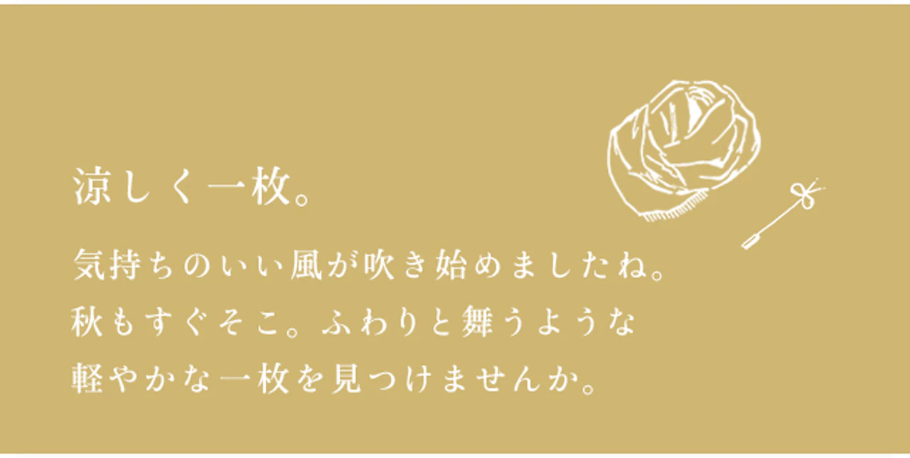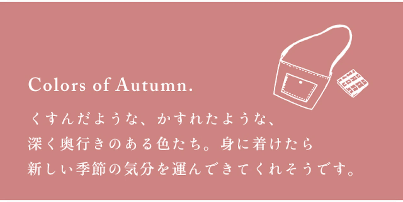 しっとりと落ち着いた秋のよそおいに きらりと映える差し色作品を集めました。 気分が華やぐワンポイントになりそうです。色をまとってお出かけしましょ。気負わずキュートな大人の持ちもの。今日の私は...