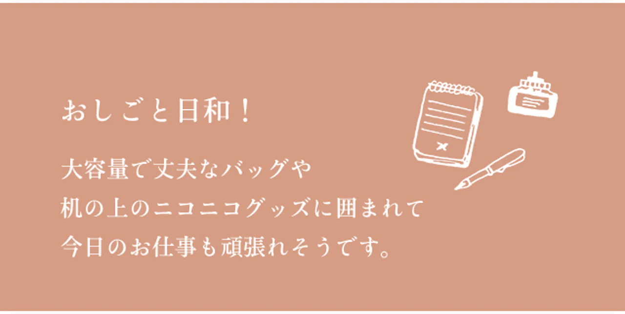 「あれがない、これもない…」とついバタバタしてしまう朝。 「あれも持って行こう。これも持って行きたい!」と思う持ち物となら 夜のうちに、うきうき気分で準備できるかもしれません。シックに決める...