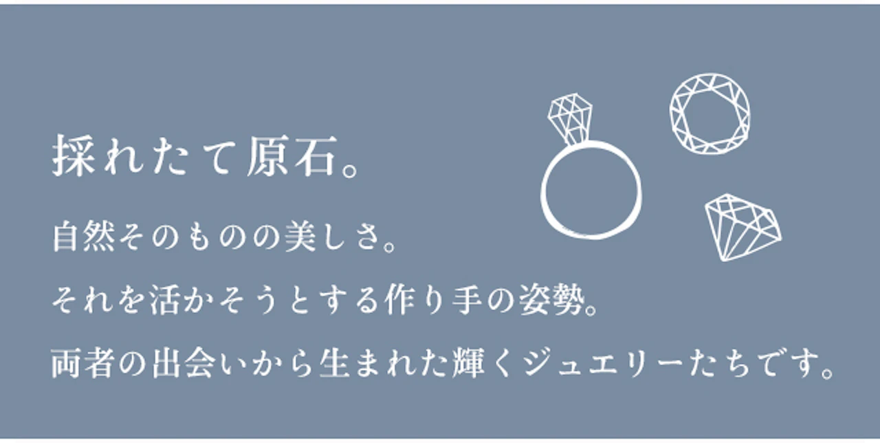 見るたびに美しく、時にはお守りのようであり。 毎日の気分を盛り上げてくれるジュエリーたち。 常に身につけていたくなるような、特別なひとつを見つけてみませんか。 採れたての原石。贅沢なシンプ...
