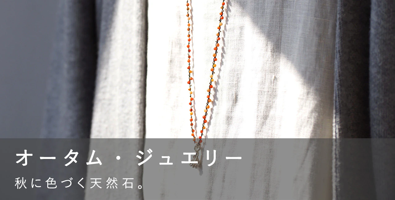 静かな秋の日、心地よい服に 軽やかな天然石をひとつ。 鏡をのぞけば、 いつもより少し凛として見える。 ずっと昔から持っていたように 暮らしに溶けこむ 秋色のデイリー・ジュエリーを、わ...