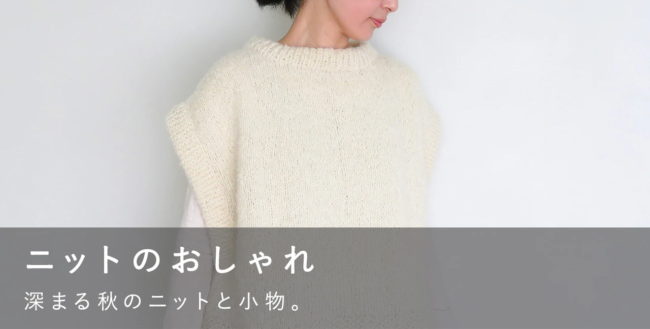 木々が美しく色づく季節、 そろそろニットの装いが気になります。 明るめカラーでお出かけの日も、 ベージュやグレーでリラックスな日も、 小物合わせで上品にもカジュアルにもなる やわらかな...
