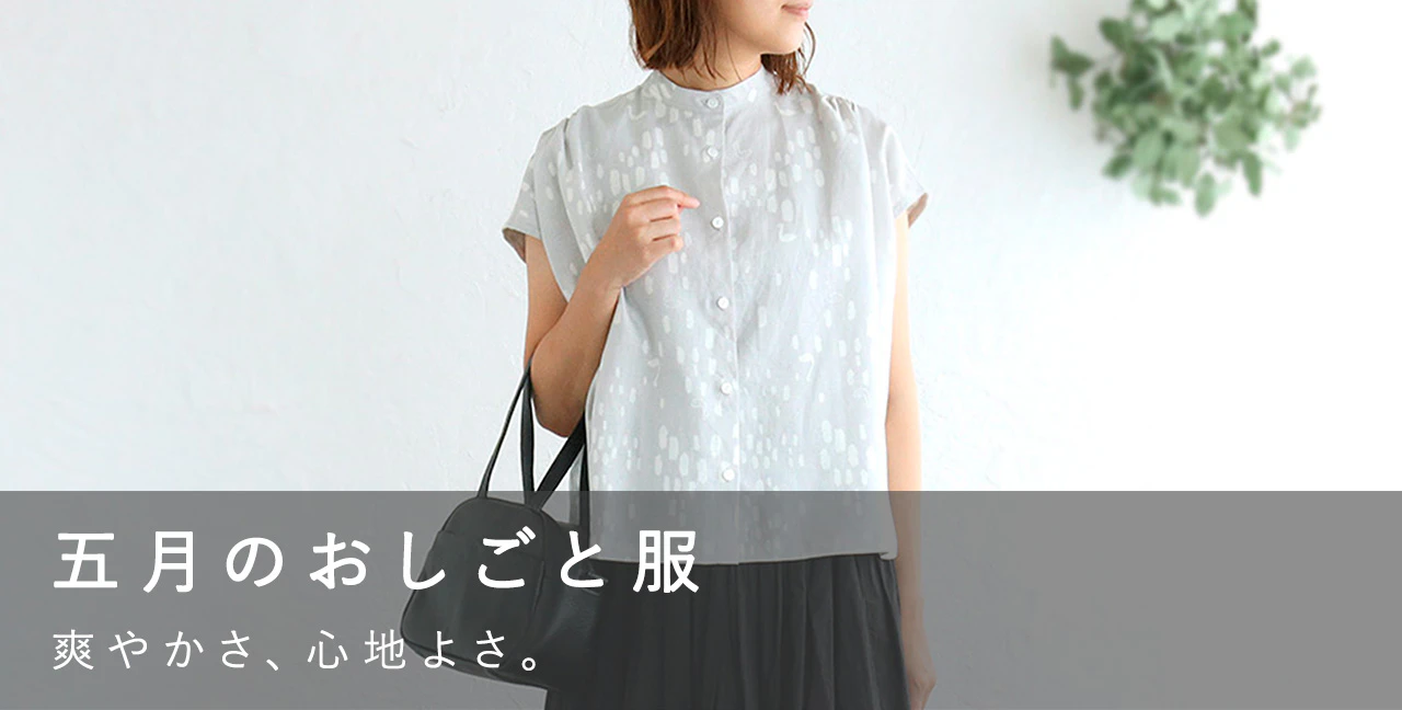五月の朝、袖を通す服。 きちんとしていて、着心地がいい。 ベーシックでいて、どこか新しい。 オフィスカジュアルにも、おうち仕事にも 私らしくいられる、初夏のお仕事服。