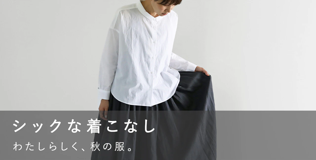 くすんだ赤や茶、深みのあるネイビー。 毎日のワードローブに一枚合わせたら、 しっくり馴染む、秋の装い。