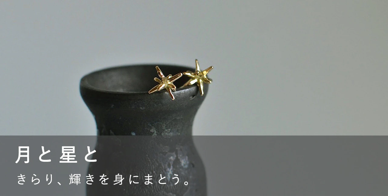 夏の帰り道、ふと見上げたら 夜空に広がる月と星。 一つ手にとり、小さな輝きを身につけた。