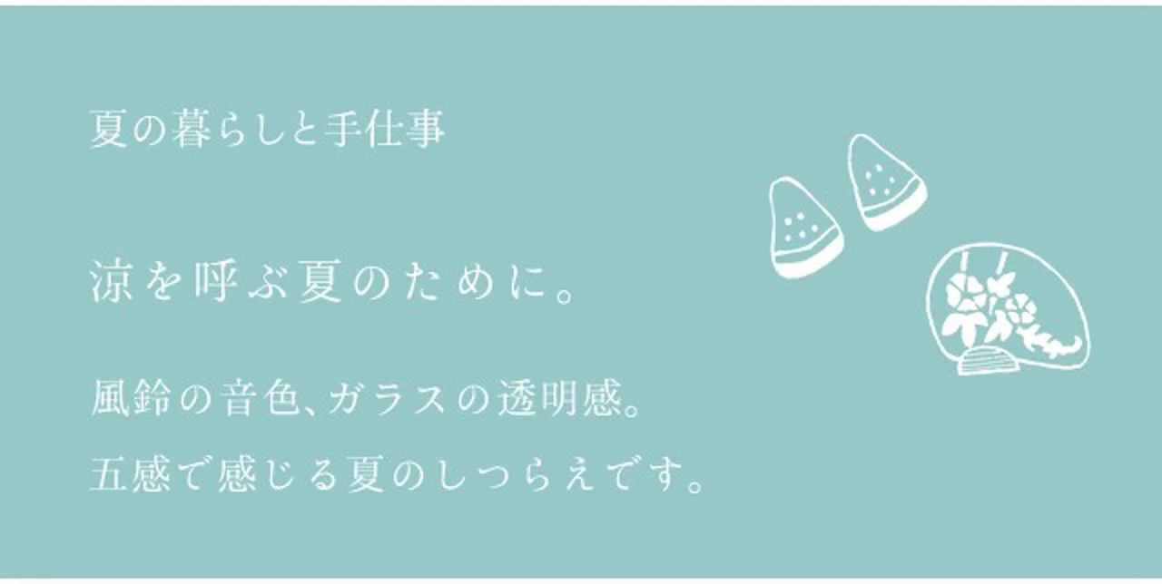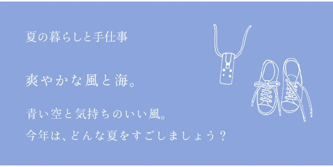 久しぶりに出会う、まぶしい暑さ。 透明感と涼しさを味方に、心がはずむ夏を。素肌に映える、かがやく透明感。風を感じて、さらりと快適に。編集後記暑さが続く日々の中では、少しでも涼しさを感じるものを...