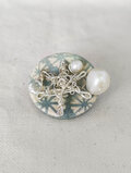 紙製のボタンの中に銀線の雪の結晶、パールの雪、水晶の雫。
