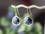 【14kgf】ガラスのフレームドロップピアス★インディゴブルー