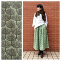 こっくり厚手:起毛ダブルガーゼのティアードスカート:響きの森(リーフグリーン))
