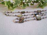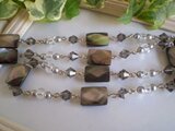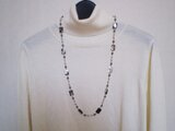 モノトーンでまとめた、ネックレスとしても使える眼鏡チェーンです。