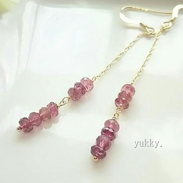 宝石質ピンクトルマリン*グラデーション14kgfピアス/イヤリング