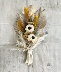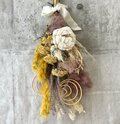 花材:ドライフラワースモークツリー・ススキ・カスピア・渦巻・ソーラーフラワー・グレビレア