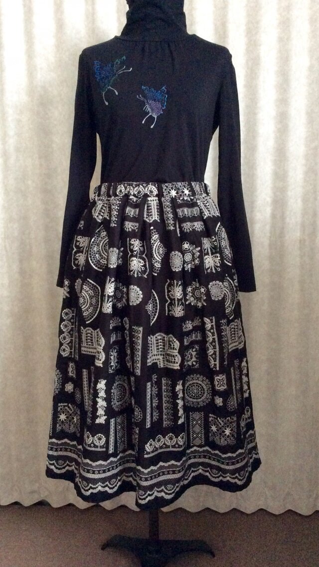 黒色に白色レース柄 、ダブルガーゼでは珍しい柄で一点物となります。