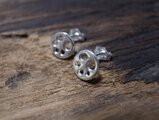 径8ミリ程度の蓮根のピアス。蓮根はよくモチーフに使われてますね。昔から見通しがいいなどと縁起物のひとつにあげられています。左右対称の形ではありません。そこが魅力でもあり、可愛いところです。軽い鏡面仕上げです。自分用を作ったついでにもう1セット作っただけなので現品限りです。