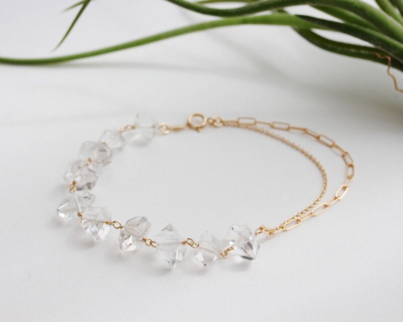 【14kgf】無研磨・天然ダイヤモンドクォーツ(天然水晶)ブレスレット