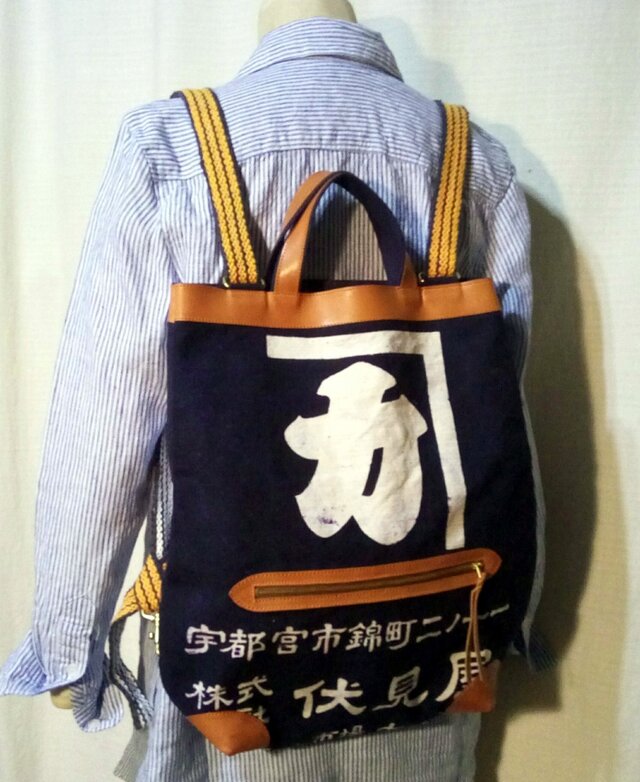 革職人が作る、本格藍染の前掛けバッグ「青果物市場」3WAYリュック