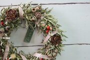 たっぷりのドライ花材と木の実等で制作した大きめのリースです。