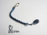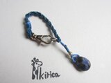 紺色の革紐で編んだちいさいストラップ。