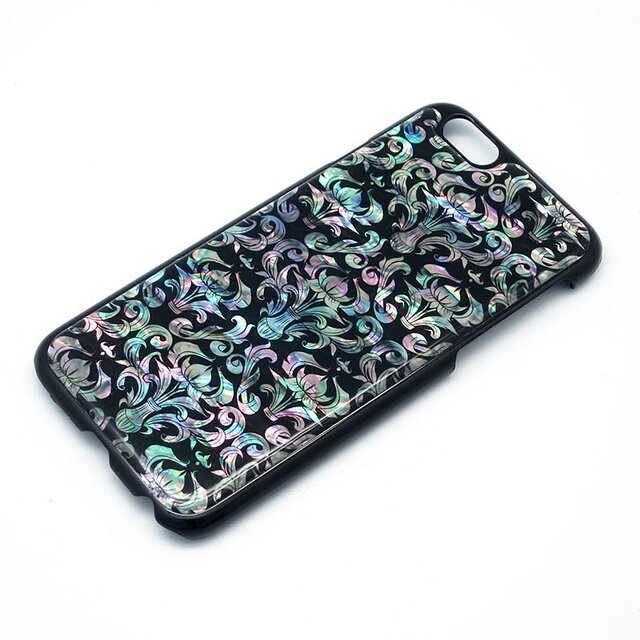 iPhone7/6/6sケース 天然貝仕様(ダマスク・黒カバー)<螺鈿アート>