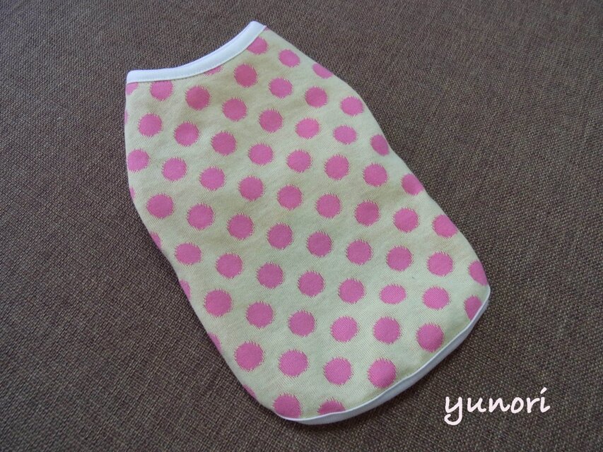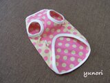 先程 受け取りました。 有難うございました。生地の裏表を上手に使っていて、とってもかわいく ムギに良く似合い気に入りました。 結構 伸縮の良い生地だったので 首周りがもう少し細くても 良かったかもしれません。でも、ゆったり着れるので 大丈夫ですよ。今日は、こんなお天気なので 無理ですが 晴れている日にこれを着て お出かけしたいと思います。 ほんとに有難うございました。