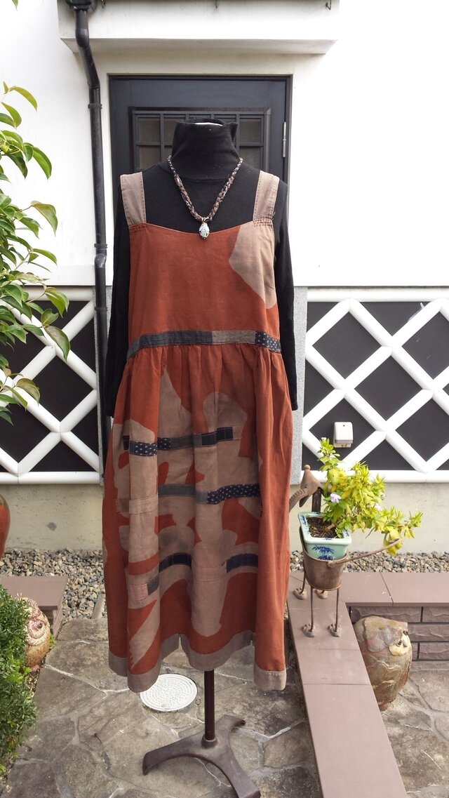 着物リメイク 古布 手作り 旗 柿渋染め ジャンパースカート