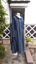 着物リメイク 古布 手作り 縞と絵絣 ワンピース