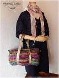 ネパールのシルクサリーを使った裂き織生地で作りました。ビビットな色合いが元気をくれます。
