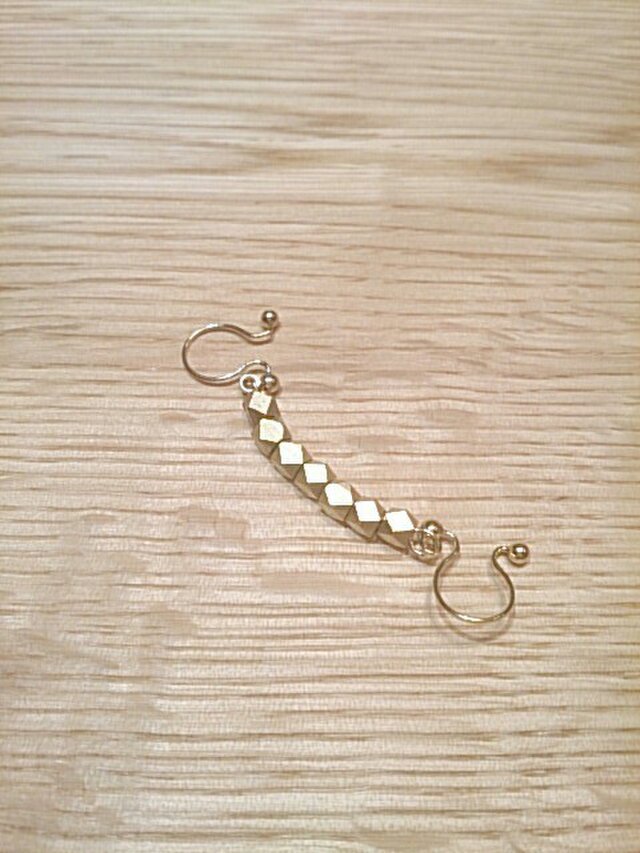マットゴールドのカクカクしたメタルビーズを繋げ耳を縁取るようなデザインに仕上げました。