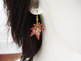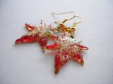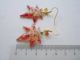真っ赤に色づいた紅葉は一枚でもとても美しいですね。そんな紅葉の中に真っ赤なガラスのかけらをレジンで閉じ込めました。ゆらゆら揺れると光りにあたってキラキラします。