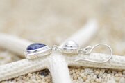 上品な白と美しい藍色の可愛いシルバーピアスが出来上がりました。