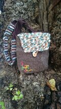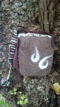 羊毛フェルトを幾層にも重ねて擦り馴染ませたのですが、鞄の内側は橙がかった黄色にしましたので、所々焦げ茶の中に黄色が透けていて、かわいい色併せになっています。