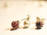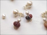 **white&red X'mas** パールと古代カーネリアンのピアス-C