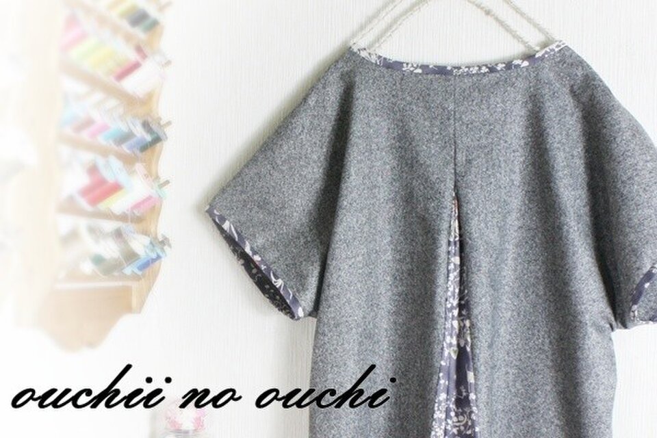 上質ウールツイードとリバティ大人気柄yosieヨシエグレーでドルマンプルオーバーブラウスをおつくりしました。