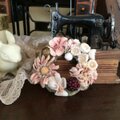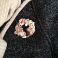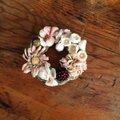 アンティークなピンクに染色したデージーやすみれ、すずらんなどでリースの形のコサージュを作りました。