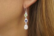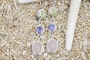 ペリドットとアイオライトとローズクオーツのシルバーピアス