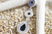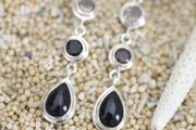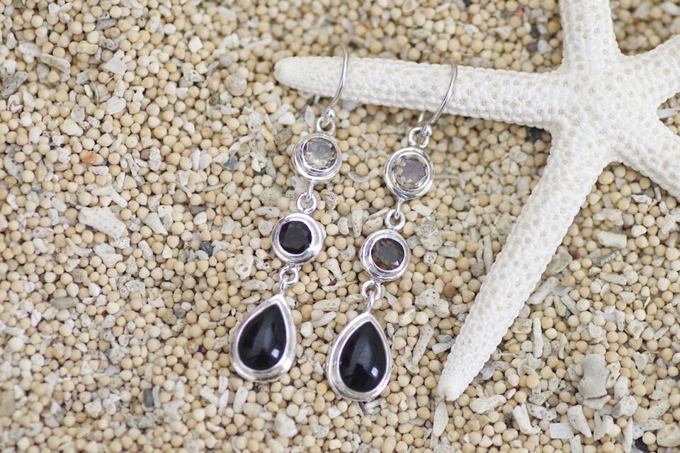 オニキスとスモーキークオーツのシルバーピアス。