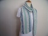 白色、水色系の糸を組み合わせて編んだストールです。