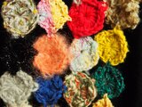 ざっくりと編んだ小ぶりの丸いモチーフをつなげたマフラーです。