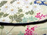 菊柄の木綿とスカイブルーの綺麗な銘仙の着物から作りました。