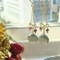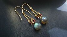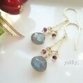 ラブラドライト(マロン)*ガーネット14kgfグリッター♪シャンデリアピアス