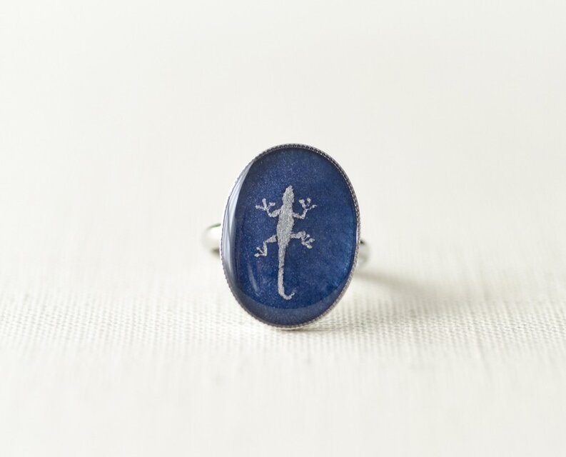 手描きのオリジナルイラストをレジンで閉じ込めたゆびわです。