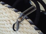 ブラックデニムの大きな薔薇モチーフにキラキラのラインストーンを飾ったかごバッグです。