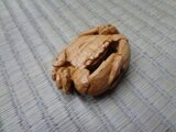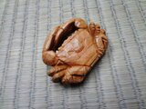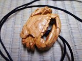和風の木彫りペンダント、このモチーフは海辺に遊ぶ、小さな磯ガニ。