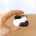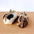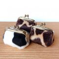 キリンと牛柄のファー生地を使った、コロンとたる型の小さなミニがま口です。